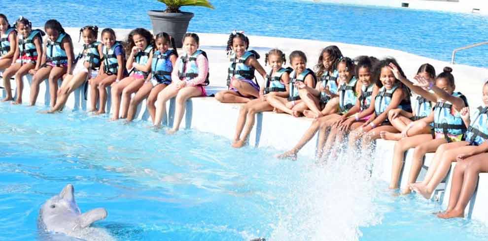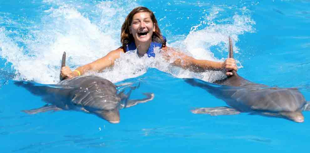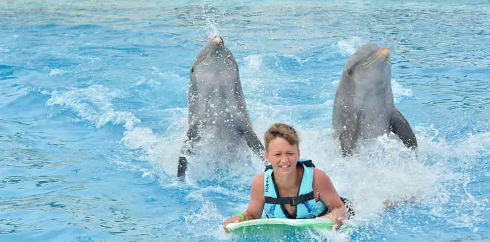 Interactive dolphin program schedules: 9:30 AM, 11:30 AM, 1:30 PM, and 3:30 PM.
